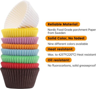 - Versez la pâte dans des moules à muffins. Ne dépassez pas les 3/4 du moule. (j’utilise toujours des moules en papier que je met dans les moules en silicone)